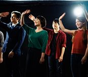 役になりきれるか!? 声量をつけるボイストレーニングだけでなく、歌詞の意味を表現するための方法を学ぶレッスンです。